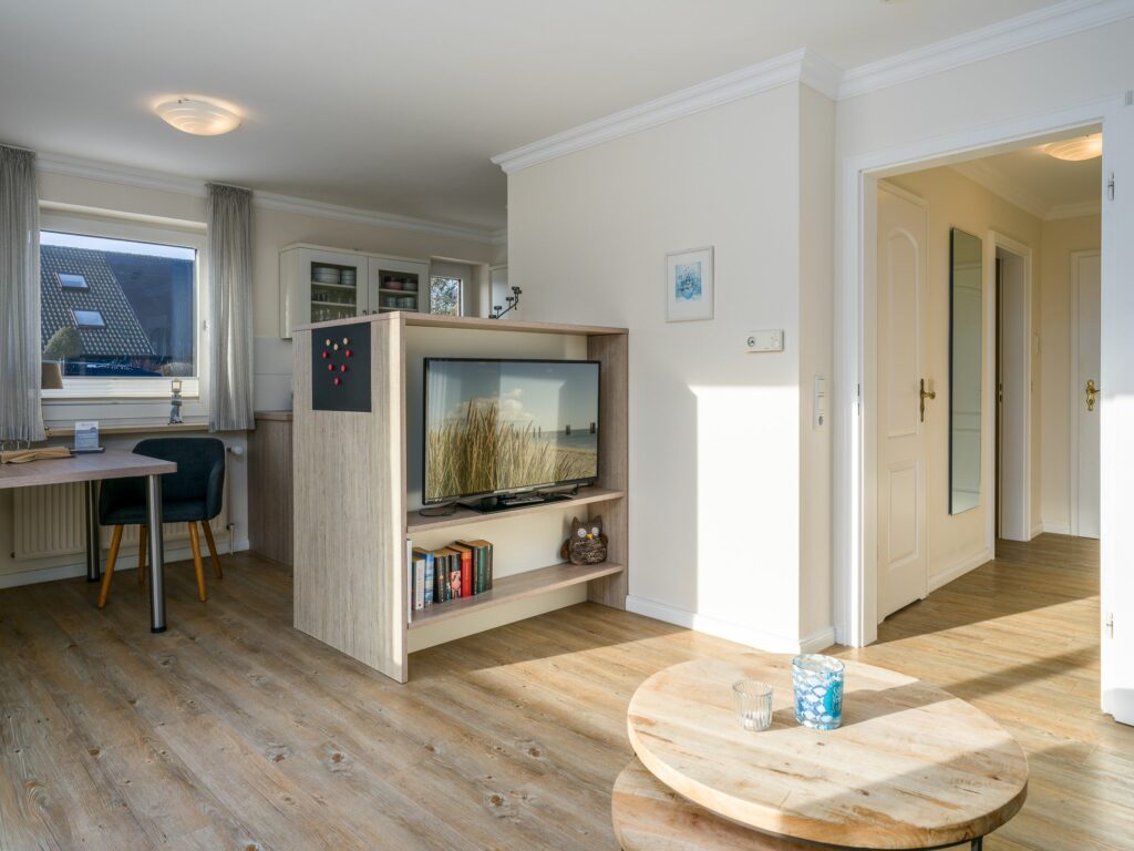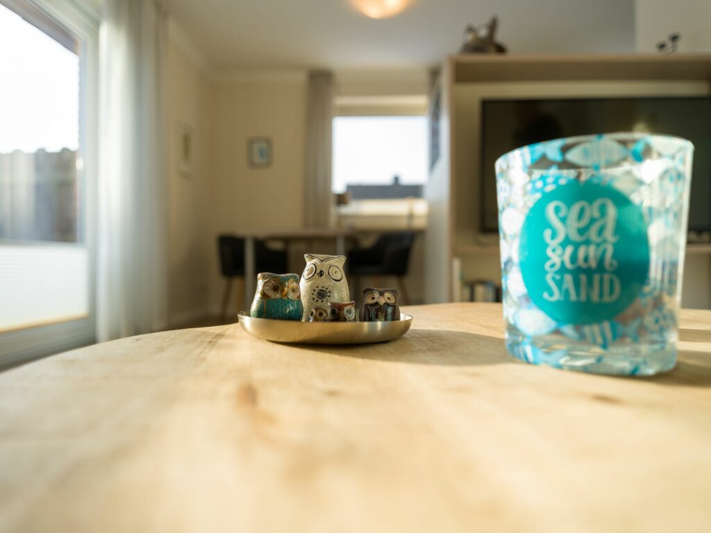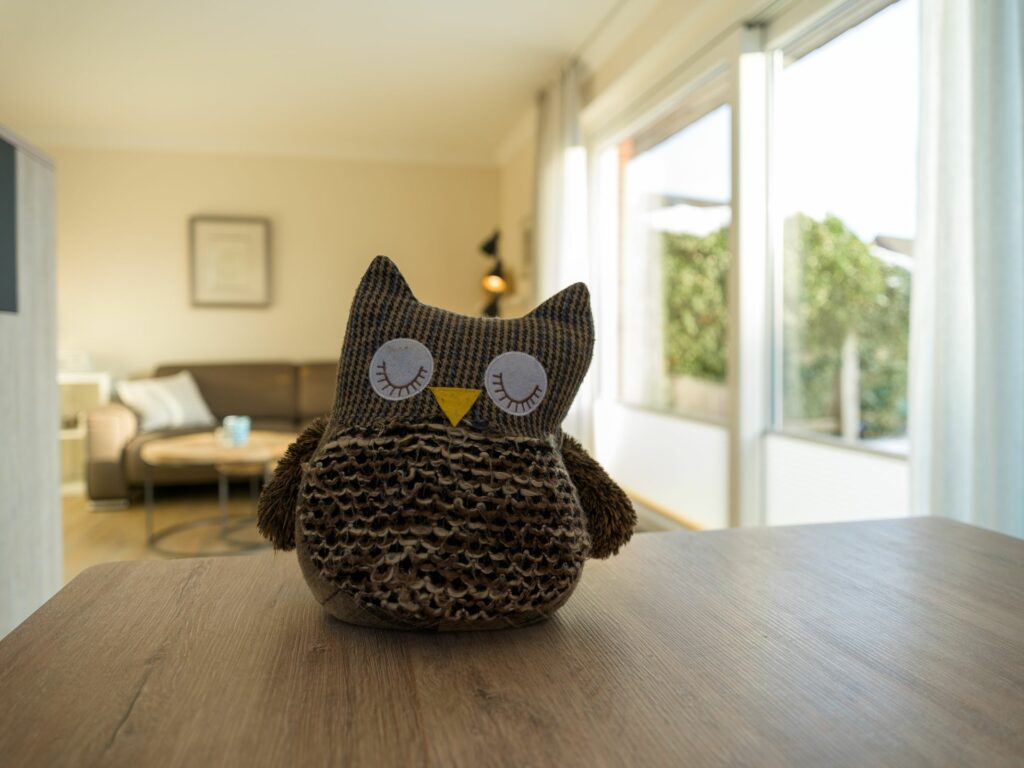 Eine tolle Raumaufteilung, helle Farben und moderne Formen sorgen im Appartement Eulennest für ganz viel Behaglichkeit. In dem offenen Wohnbereich wurde die Küche inselartig von der Sofaecke abgetrenn...Weiterlesent und auch ein kleiner Esstisch passt noch hervorragend rein. Die bodentiefen Fenster schenken schöne Aussichten auf die Südterrasse mit Strandkorb und Gartenmöbeln sowie den großen Garten. Passend zum Namen finden sich natürlich sowohl auf Bildern als auch in Accessoires zahlreiche Eulen wieder.